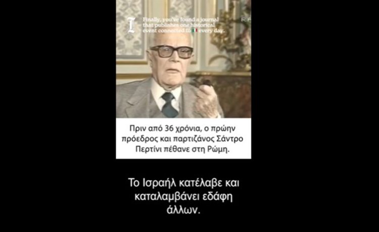 Στο τηλεοπτικό πρωτοχρονιάτικο μήνυμά του στις 31/12/1981, ο Περτίνι δήλωσε ότι το Ισραήλ κατείχε εδάφη που δεν του ανήκαν, αντικατοπτρίζοντας τη στάση της Iταλίας υπέρ του διεθνούς δικαίου και των ψηφισμάτων του ΟΗΕ κατά τη διάρκεια των συζητήσεων για τη Mέση Ανατολή.