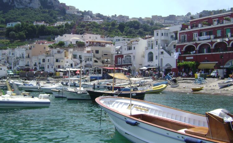 Το Κάπρι, στον κόλπο της Νάπολης, φημίζεται για τις λευκές επαύλεις του, την ακτογραμμή του και τους κολπίσκους του και τα πολυτελή ξενοδοχεία του.
