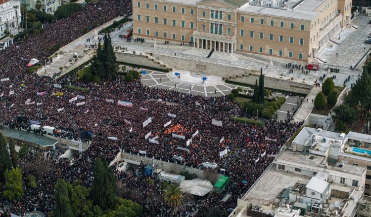 «Λαοθάλασσα στη μνήμη των θυμάτων της σύγκρουσης τρένων το 2023», ήταν ο τίτλος ενός τα τηλεγραφήματα του Γαλλικού Πρακτορείου για τις διαδηλώσεις.