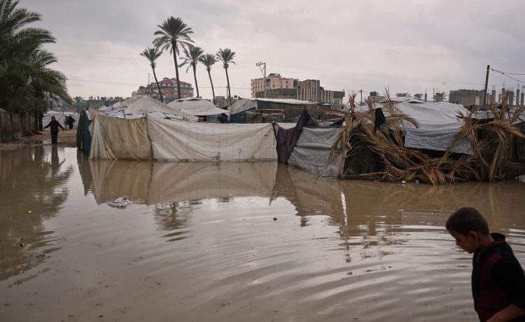Στη Νουσεϊράτ, στο κέντρο του θύλακα, Παλαιστίνιοι προσπαθούσαν την Παρασκευή να απομακρύνουν τα νερά γύρω από τις σκηνές τους με πλαστικές λεκάνες και φτυάρια, εν μέσω των ερειπίων που άφησε πίσω του ο πόλεμος μεταξύ του Ισραήλ και της Χαμάς. Παιδιά, ορισμένα ξυπόλυτα, τσαλαβουτούσαν στις λάσπες, ενώ η βροχή συνεχιζόταν.