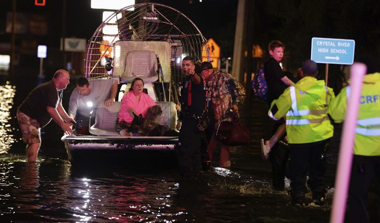 Στο Σένταρ Κι, ένα νησί μερικών εκατοντάδων κατοίκων στη Φλόριντα, στέγες σπιτιών ξηλώθηκαν από τους ισχυρούς ανέμους. Η Χέλεν έφθασε στη βορειοδυτική Φλόριντα το απόγευμα της Πέμπτης έως τυφώνας κατηγορίας 4, στην πεντάβαθμη κλίμακα Σαφίρ-Σίμπσον, με ανέμους που έπνεαν με ταχύτητα 225 χλμ/ώρα.