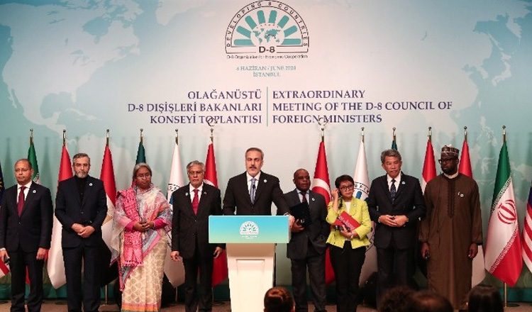 Στην κοινή δήλωση, που δόθηκε στη δημοσιότητα μετά την υπουργική σύνοδο των D-8, η οποία πραγματοποιήθηκε στο γραφείο της τουρκικής Προεδρίας της Δημοκρατίας στο ανάκτορο του Ντολμάμπαχτσε, ζητείται «άμεση, μόνιμη και άνευ όρων» κατάπαυση του πυρός στη Γάζα και «τερματισμός της ισραηλινής επίθεσης κατά των Παλαιστινίων», ενώ καλούνται όλες οι χώρες να διασφαλίσουν την αυστηρή τήρηση από το Ισραήλ των μέτρων που διέταξε το Διεθνές Δικαστήριο.
