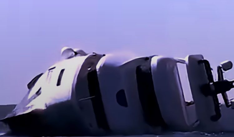 Το βίντεο που καταγράφηκε από κινητά τηλέφωνα δείχνει τη στιγμή που το σκάφος αρχίζει να γέρνει επικίνδυνα και μέσα σε ελάχιστα λεπτά βυθίζεται.