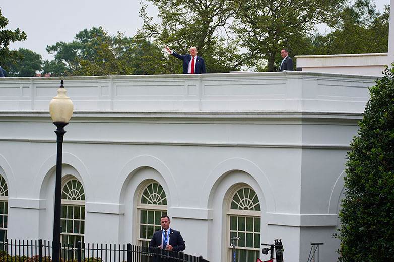 Ο πρόεδρος των ΗΠΑ Ντόναλντ Τραμπ έκανε μια απροσδόκητη εμφάνιση στην οροφή του Λευκού Οίκου και αστειεύτηκε με τους δημοσιογράφους, οι οποίοι τον ρώτησαν τι έκανε εκεί: