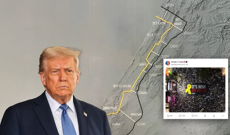 Τα ξημερώματα της Κυριακής (5/10/2025), ο Τραμπ ανάρτησε φωτογραφία από τη μεγαλειώδη συγκέντρωση στην Πλατεία των Ομήρων στο Τελ Αβίβ, όπου χιλιάδες Ισραηλινοί ζήτησαν από την κυβέρνηση να αποδεχθεί το ειρηνευτικό του σχέδιο για την παύση των εχθροπραξιών και την απελευθέρωση όλων των αιχμαλώτων.