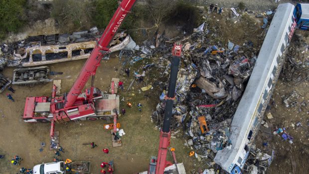 Έρευνες των σωστικών συνεργείων για τους αγνοούμενους στα συντρίμμια των δύο αμαξοστοιχιών που συγκρούστηκαν στα Τέμπη, Πέμπτη 2 Μαρτίου 2023. (ΛΕΩΝΙΔΑΣ ΤΖΕΚΑΣ/EUROKINISSI)