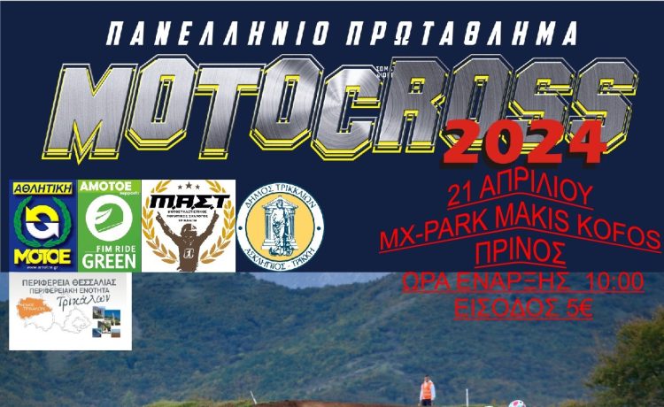 Την Κυριακή 21 Απριλίου 2024, από τις 10 το πρωί, θα διεξαχθεί ο αγώνας που προσμετρά στο Πανελλήνιο Πρωτάθλημα. Η διοργάνωση από τον ΜΑΣΤ (Μοτοσικλετιστικό Αθλητικό Σύλλογο Τρικάλων) με τη συμβολή της ΑΜΟΤΟΕ (Αθλητική Μοτοσυκλετιστική Ομοσπονδία Ελλάδος) του Δήμου Τρικκαίων και της Περιφέρειας Θεσσαλίας – ΠΕ Τρικάλων πραγματοποιείται στο MX -PARK «Μάκης Κωφός», με είσοδο 5 ευρώ.