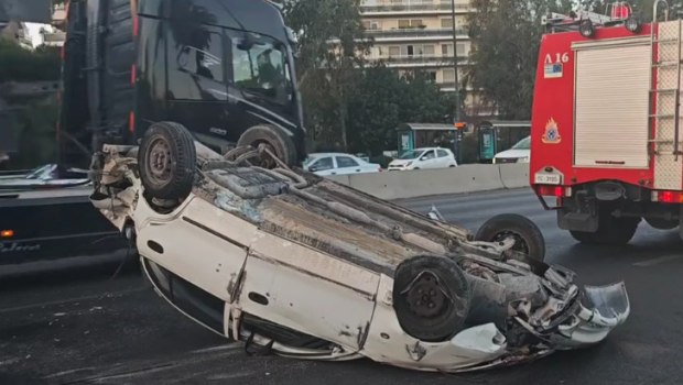 Τροχαίο με ανατροπή ΙΧ και τραυματία στην Ποσειδώνος