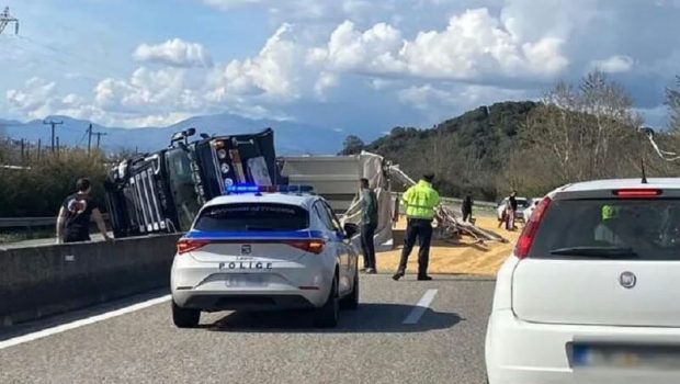 Μέρος του φορτίου έχει απομακρυνθεί από την άσφαλτο και η μία λωρίδα δόθηκε στην κυκλοφορία.