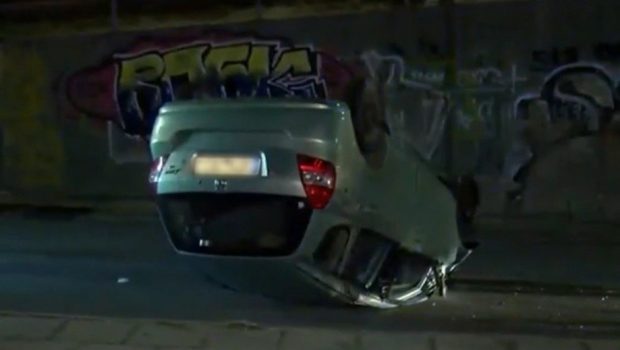 Από το ατύχημα τραυματίστηκαν τα δύο άτομα που επέβαιναν στο αυτοκίνητο. Όλα ξεκίνησαν όταν ένα αυτοκίνητο ανετράπη κάτω από άγνωστες μέχρι στιγμής συνθήκες.