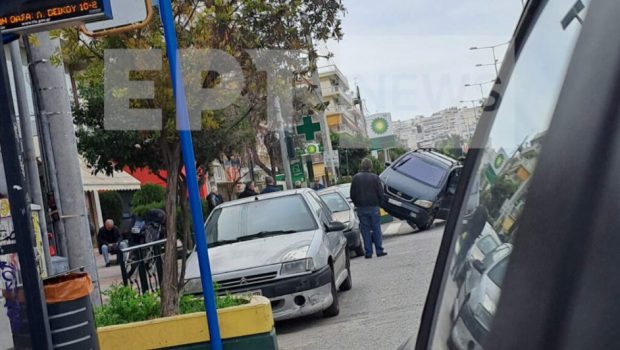 Διερχόμενο αμάξι κατέληξε κατά το ήμισυ πάνω σε παρκαρισμένα οχήματα, για άγνωστους ακόμη λόγους, λίγο μετά τη διασταύρωση με την οδό Γαλατσίου. Μάλιστα το εν λόγω αυτοκίνητο έφερε σήμανση νέου οδηγού στο πίσω μέρος, όπως μεταδίδει η ΕΡΤ.