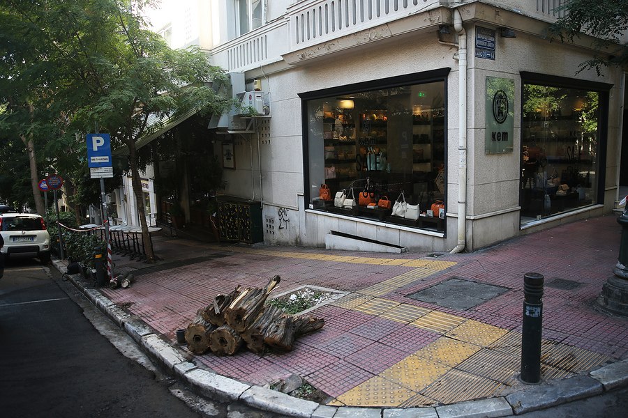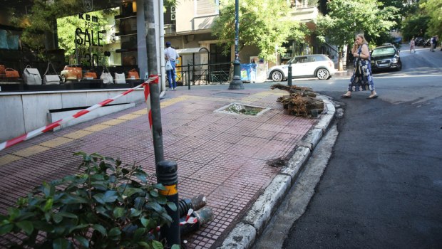 Φωτογραφία από το σημείο στη διασταύρωση Λουκιανού και Πατριάρχου Ιωακείμ στο Κολωνάκι, όπου έγινε το τροχαίο με το τζιπ.