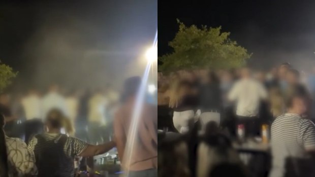Σε βίντεο φαίνονται αρκετές παρέες να τσακώνονται και να πιάνονται στα χέρια κατά τη διάρκεια του πανηγυριού στα Σιταράλωνα, να φεύγουν καρέκλες, τραπέζια και μπουκάλια μεταξύ άλλων.
