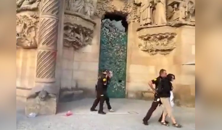 Σε ένα βίντεο που ανήρτησε στα μέσα κοινωνικής δικτύωσης η οργάνωση Futuro Vegetal, διακρίνονται δύο μέλη της να συλλαμβάνονται από άνδρες ασφαλείας, αφού έχουν ρίξει μπογιά στο κάτω μέρος μιας στήλης του διάσημου καθεδρικού ναού, φωνάζοντας: «Κλιματική δικαιοσύνη».