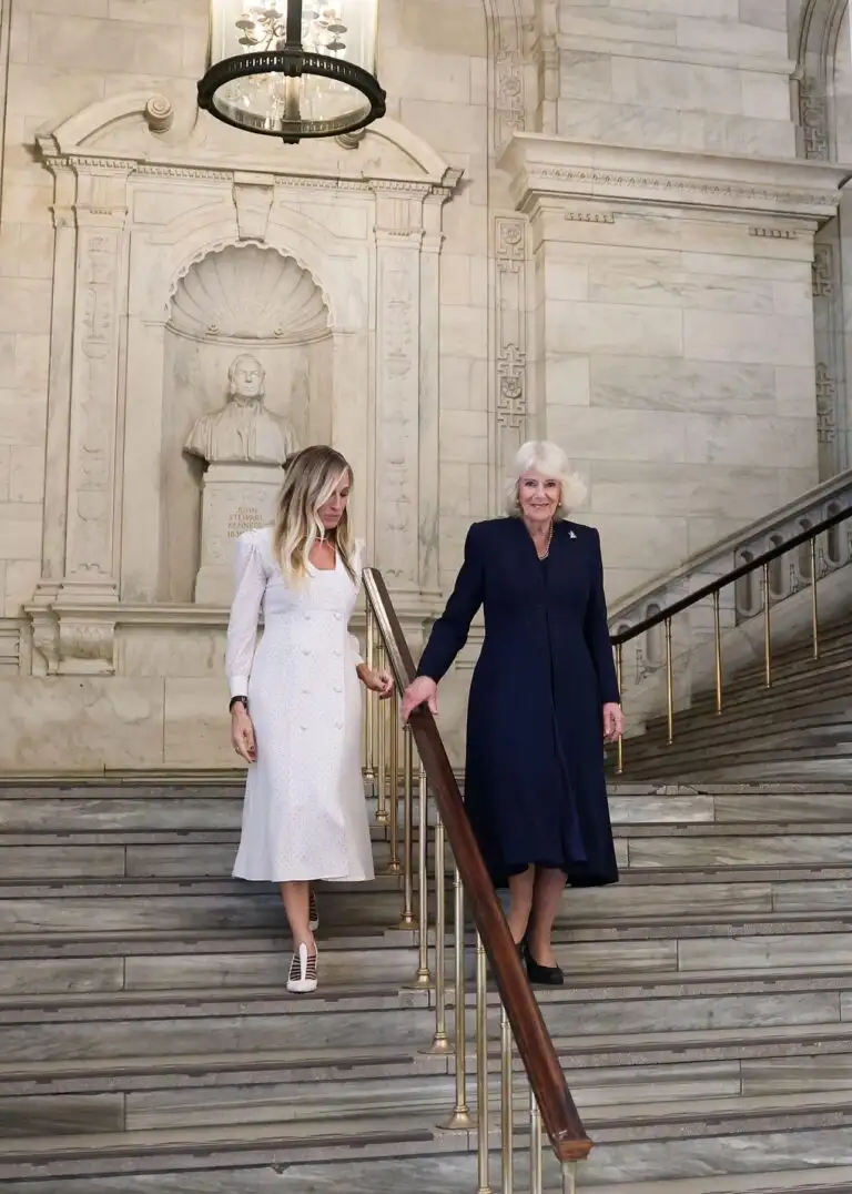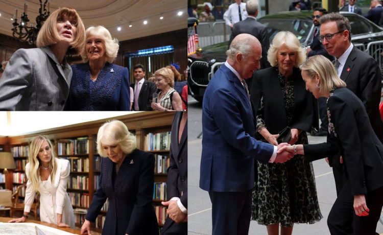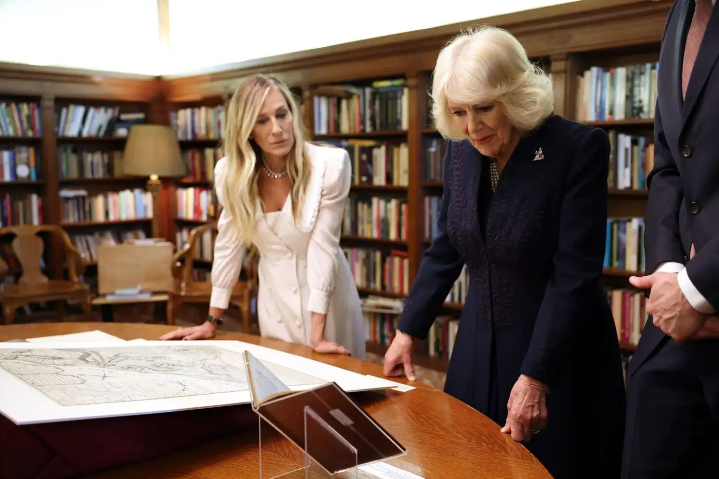 Ιδιαίτερη στιγμή της επίσκεψης αποτέλεσε και η παρουσία της βασίλισσας στη New York Public Library, όπου συναντήθηκε με τη Sarah Jessica Parker και την Anna Wintour.