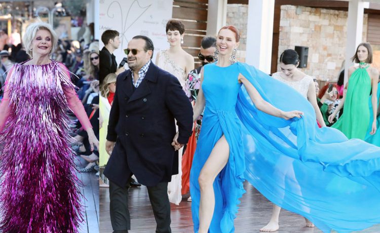 Στο πλευρό του ήταν φυσικά, το αγαπημένο του μοντέλο Έβελυν Καζαντζόγλου, η οποία έκλεψε για άλλη μια φορά τα βλέματα με τη δημιουργία του σχεδιαστή, φορώντας ένα γαλάζιο φόρεμα στη πασαρέλα.