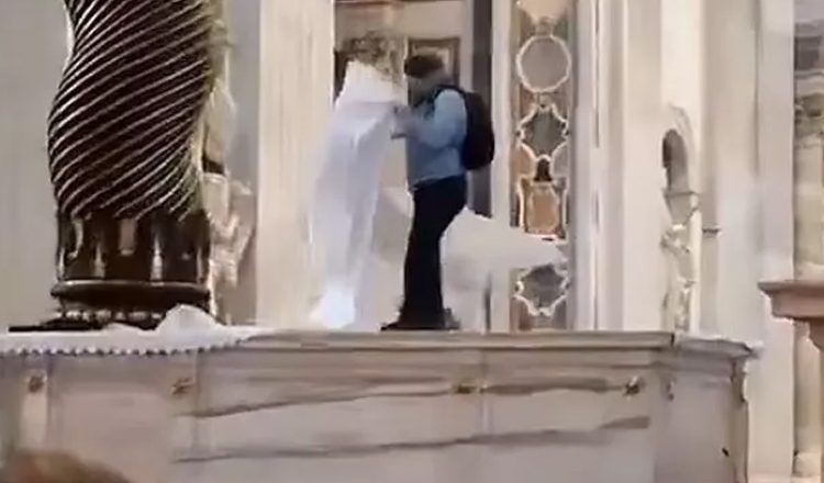 Ένα βίντεο που δείχνει έναν άνδρα με καλυμμένο το πρόσωπο, να έχει εισβάλει στην Βασιλική του Αγίου Πέτρου στο Βατικανό και να βανδαλίζει τον Ναό, έχει γίνει viral τις τελευταίες ώρες στο διαδίκτυο.