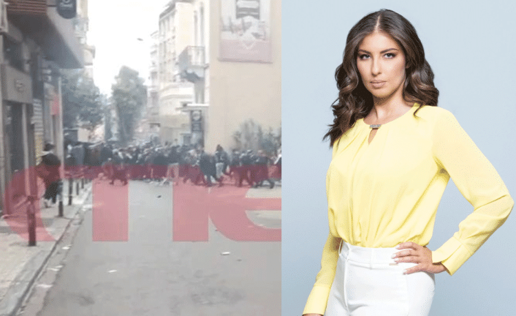 Η δημοσιογράφος του Mega με δυσκολία μετέφερε τις εικόνες που αντίκριζε με γονείς και μικρά παιδιά να μπαίνουν σε κεντρικό ξενοδοχείο ώστε να διαφύγουν τον κίνδυνο.