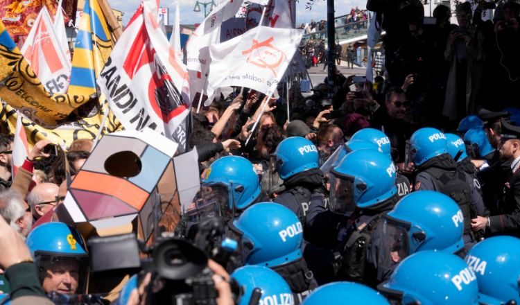 Στην Piazzale Roma, όπου βρίσκεται ο κεντρικός τερματικός σταθμός λεωφορείων της Βενετίας, υπήρξε ένταση μεταξύ της αστυνομίας και των περίπου 500 ατόμων που διαμαρτύρονταν κατά του τέλους.