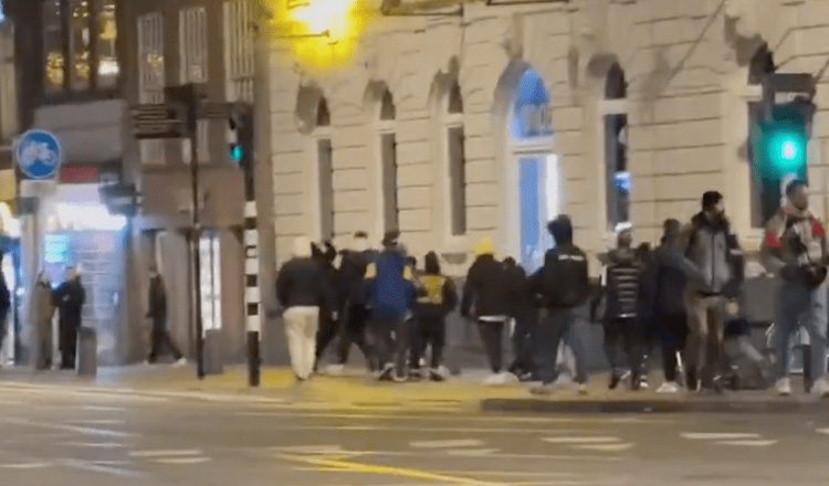 #BREAKING: New footage of a mob of antisemites attacking Jewish soccer fans in Amsterdam pic.twitter.com/zjRyYc9XX1