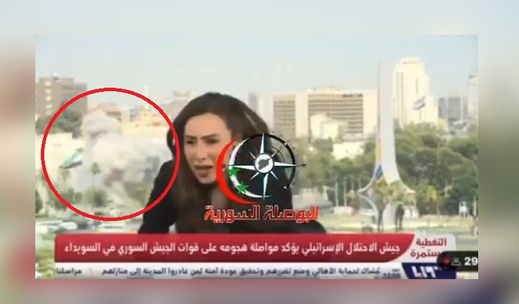 Λίγα λεπτά αφότου ο Υπουργός Άμυνας του Ισραήλ, Ισραέλ Κατζ, προειδοποίησε την Τετάρτη 16/07 για «οδυνηρά χτυπήματα» κατά του συριακού καθεστώτος, μια ζωντανή τηλεοπτική μετάδοση κατέγραψε τη στιγμή ενός αεροπορικού πλήγματος πίσω από το στούντιο ειδήσεων.