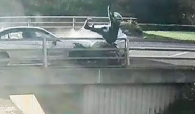 Τον γύρο του διαδικτύου κάνει ένα βίντεο από τη Βρετανία, στο οποίο καταγράφεται η στιγμή που ένας μοτοσικλετιστής εκτινάσσεται από τη μηχανή του και πέφτει από μία γέφυρα μετά από σύγκρουση με αυτοκίνητο.