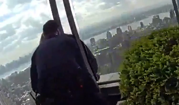 Οι αστυνομικοί βγήκαν από την εξωτερική πλευρά του προστατευτικού τζαμιού καθώς στη γωνία κρεμόταν μια γυναίκα. Το περιστατικό έγινε στην περιοχή του Μανχάταν της Νέας Υόρκης. Αφού την έσωσαν, την μετέφεραν σε ασφαλές μέρος ενώ παραμένει άγνωστο εάν ήθελε να αυτοκτονήσει. Την στιγμή της διάσωσης κατέγραψε κάμερα που ήταν τοποθετημένη στη στολή ενός αστυνομικού.