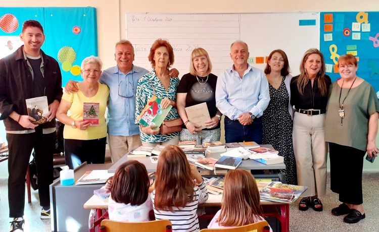 Τα βιβλία παρέδωσαν τα μέλη της ΕΕ Γεωργία Γιάγκου κι Ελένη Χριστούλα, η ταμίας Αναστασία Κιούση, ο γραμματέας Βαγγέλης Ρεμπάπης και ο πρόεδρος του ΠΟΚΕΛ Αργύρης Γιουρούκης.