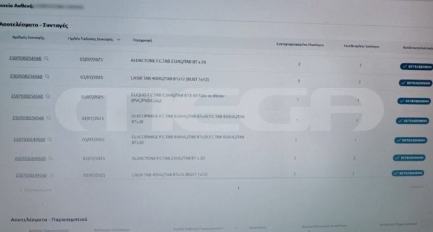 Ωστόσο, όπως αποκαλύπτεται μέσα από τα έγγραφα που έφερε στη δημοσιότητα το MEGA, η 62χρονη έγραφε φάρμακα στο ΑΜΚΑ της νεκρής μητέρας της έως τον Ιούλιο του 2025.