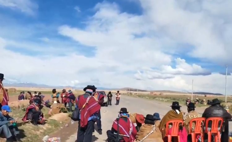 Comunidad indigena en Bolivia tiene bloqueado el paso de Desaguadero a La Paz, camiones y buses con turistas. pic.twitter.com/4v1GtfLkYP