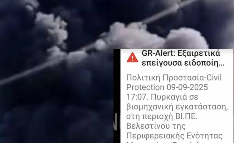 🆘 Fire at the industrial facility in the area #Velestino of the regional unit of #Magnisia