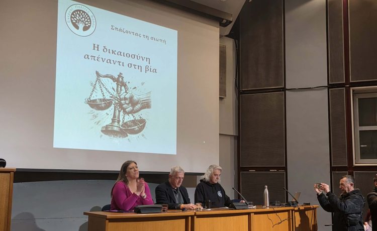 Η πολύμορφη βία, από την αυθαιρεσία της εξουσίας και τη θεσμική εκτροπή έως την κοινωνική ανοχή και την αστυνομική καταστολή, βρέθηκε στο επίκεντρο της εκδήλωσης με τίτλο «Η Δικαιοσύνη απέναντι στη Βία», που πραγματοποιήθηκε στην αίθουσα του ΤΕΕ Βόλου με πρωτοβουλία των Ενεργών Πολιτών Βόλου.
