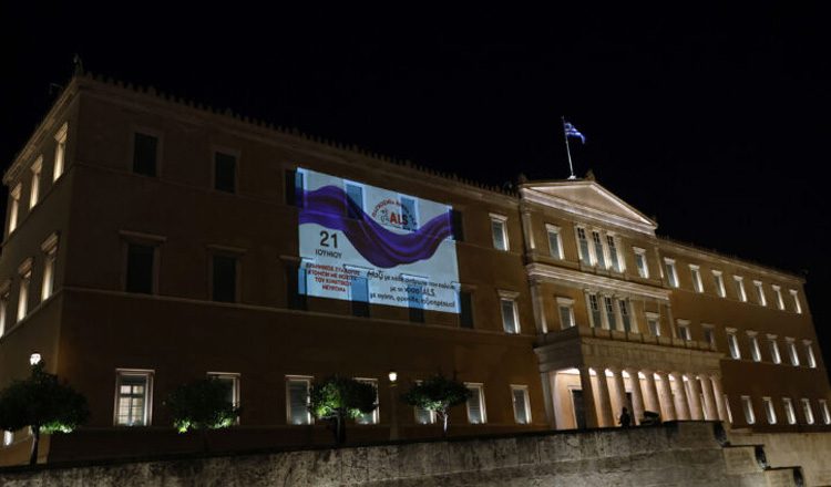 Με αφορμή την Παγκόσμια Ημέρα Ευαισθησίας για την Πλάγια Μυατροφική Σκλήρυνση, γνωστή ως «Νόσος του Κινητικού Νευρώνα» (ALS), όπως έχει καθιερωθεί, κάθε χρόνο, η 21η Ιουνίου, η Βουλή των Ελλήνων φωταγώγησε, για πρώτη φορά, το κτήριό της με το λογότυπο που έχει ως κεντρική μορφή τον μυθικό Κένταυρο, σύμβολο της θεραπείας, της υπομονής και του αγώνα, κάθε ανθρώπου, να ξεπερνάει τις φυσικές του αδυναμίες. Στο επίκεντρο το μήνυμα «Μαζί με κάθε άνθρωπο που παλεύει με τη νόσο ALS, με αγάπη, φροντίδα, αξιοπρέπεια».