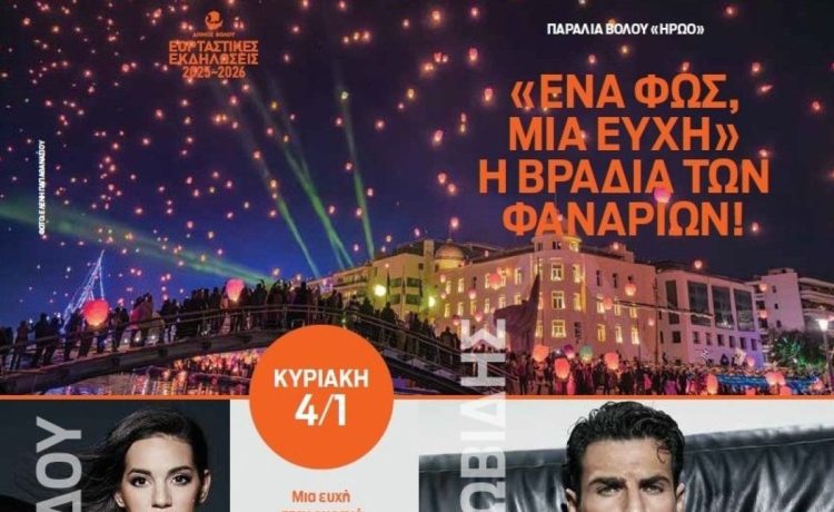 Με ένα από τα πιο εντυπωσιακά και συναισθηματικά δρώμενα της χειμερινής περιόδου, ο Βόλος ετοιμάζεται να καλωσορίσει το 2026. Την Κυριακή 4 Ιανουαρίου, στις 19:00, η παραλία της πόλης θα μετατραπεί ξανά σε ένα απέραντο σκηνικό φωτός, καθώς χιλιάδες χάρτινα φαναράκια θα υψωθούν στον ουρανό, μεταφέροντας μηνύματα ελπίδας και αισιοδοξίας για τη νέα χρονιά. Η καθιερωμένη πλέον «Βραδιά των Φαναριών» επιστρέφει, επιβεβαιώνοντας τη θέση της ως ένας από τους πιο αγαπημένους θεσμούς του Βόλου.