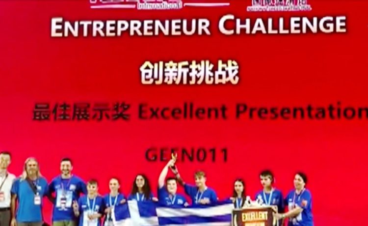Ο δημοσιογράφος της ΕΡΤ Βαγγέλης Μητρούσιας παρουσιάζει τους νικητές τους διαγωνισμού για την καλύτερη ρομποτική πρόταση επιχειρηματικότητας που διεξήχθη στο Πεκίνο.