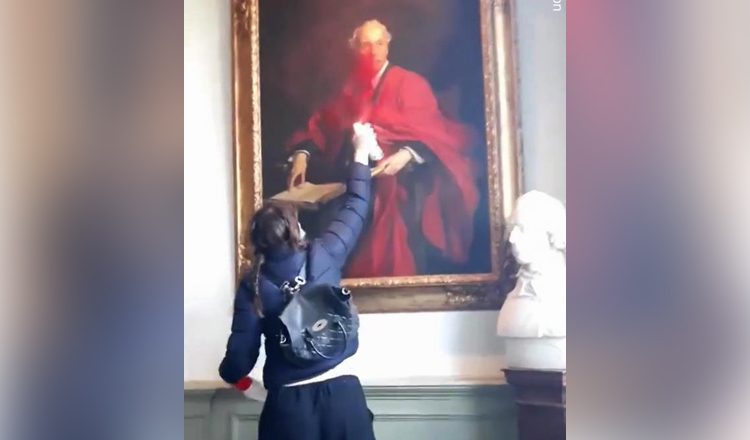 Ακτιβιστές υπέρ της Παλαιστίνης κατέστρεψαν πίνακα με το πορτρέτο του λόρδου Μπάλφουρ, στη Κέμπριζ.