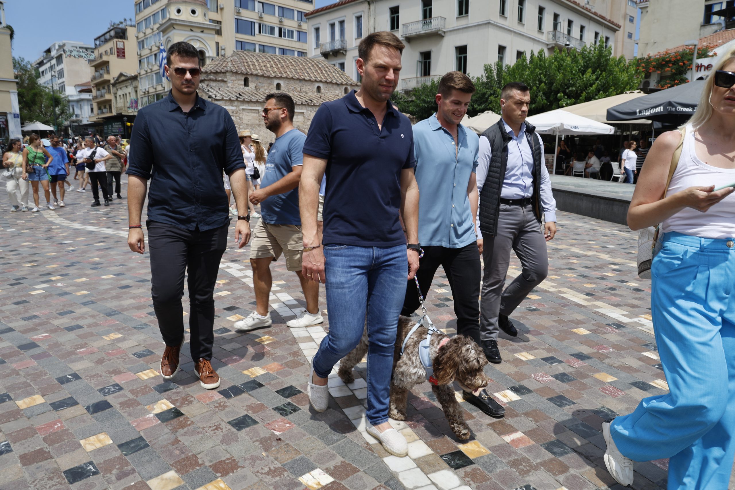Η καλή μέρα αξιοποιήθηκε με τον καλύτερο τρόπο από τον Στέφανο Κασσελάκη. Έκανε βόλτα στον πεζόδρομο της Ερμού που φυσικά είχε πολλές στάσεις για σέλφις και κουβέντα με τον κόσμο.