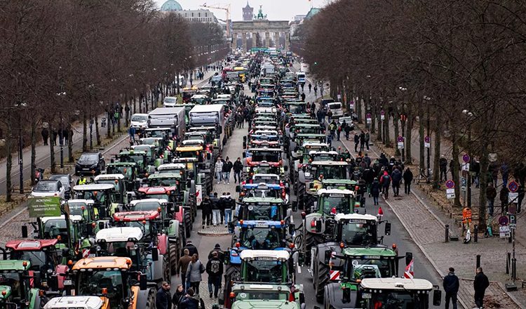 Σε δημοσίευμά της η Γερμανική εφημερίδα Deutsche Welle, κάνει λόγο για περίπου 1.000 τρακτέρ και η πλευρά των διαδηλωτών υπολογίζει έως και 10.000 διαδηλωτές με τους αριθμούς ακόμη να μην επιβεβαιώνονται.
