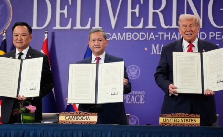 Ο Ντόναλντ Τραμπ συνυπέγραψε σήμερα συμφωνία κατάπαυσης του πυρός μεταξύ της Καμπότζης και της Ταϊλάνδης, λίγο μετά την άφιξή του στη Μαλαισία, πρώτο σταθμό της περιοδείας του στην Ασία στη διάρκεια της οποίας αναμένεται να συναντηθεί με τον Κινέζο ομόλογό του Σι Τζινπίνγκ.