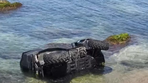 Ένα τροχαίο ατύχημα σημειώθηκε πριν λίγες ημέρες στην περιοχή του Αργασίου, στη Ζάκυνθο, όταν μια γουρούνα (τετράτροχο ATV) εξετράπη της πορείας της και κατέληξε στη θάλασσα, κοντά στην εκκλησία του Αγίου Σπυρίδωνος, σύμφωνα με το Ionian TV.