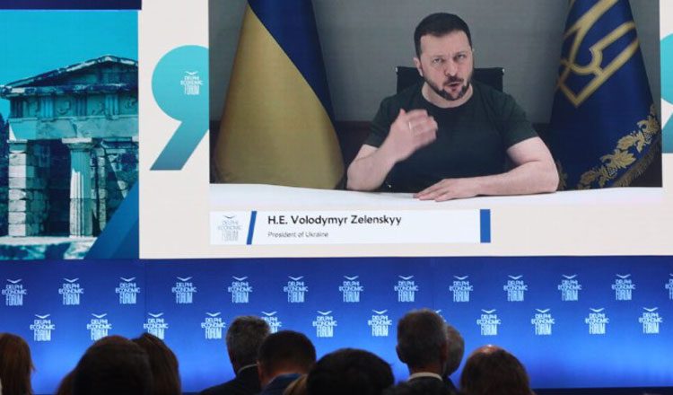 Μήνυμα προς τη Δύση να στηρίξει ακόμα πιο αποφασιστικά την Ουκρανία στον πόλεμο που της κήρυξε η Ρωσία έστειλε ο Πρόεδρος της Βολοντίμιρ Ζελένσκι από το 9o Οικονομικό Φόρουμ των Δελφών, που πραγματοποιείται στους Δελφούς 10- 13 Απριλίου και τελεί υπό την Αιγίδα της Α.Ε. της Προέδρου της Δημοκρατίας, κας Κατερίνας Σακελλαροπούλου.