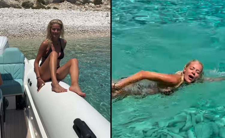 Στο κλιπ που μοιράστηκε με τους διαδικτυακούς της ακόλουθους στο Instagram, φαίνεται να βουτά από ένα σκάφος στη θάλασσα και να απολαμβάνει τα καταγάλανα νερά του νησιού, φορώντας ένα μαύρο μπικίνι.