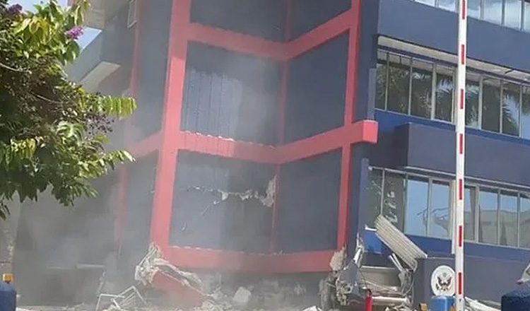 The tremor toppled a concrete pillar, cracked part of a wall and buckled windows in the building, which also houses other diplomatic missions. https://t.co/6tM54b2ZlY pic.twitter.com/xPKWDH7OMz