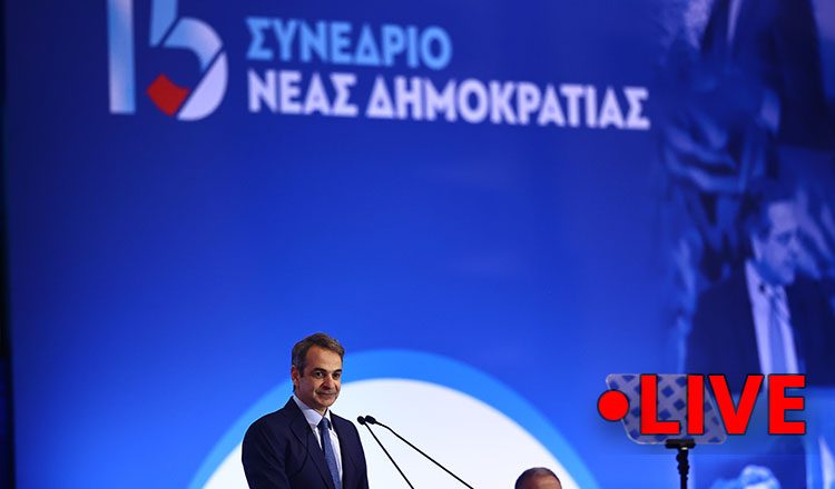 Δείτε σε ζωντανή μετάδοση την ομιλία του πρωθυπουργού και προέδρου της ΝΔ, Κυριάκου Μητσοτάκη, στο 15ο Συνέδριο της Νέας Δημοκρατίας.
